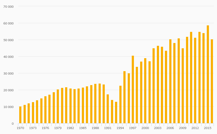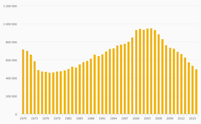 Road Injury Accidents fell 7.02% to 499,201 in Japan in 2016