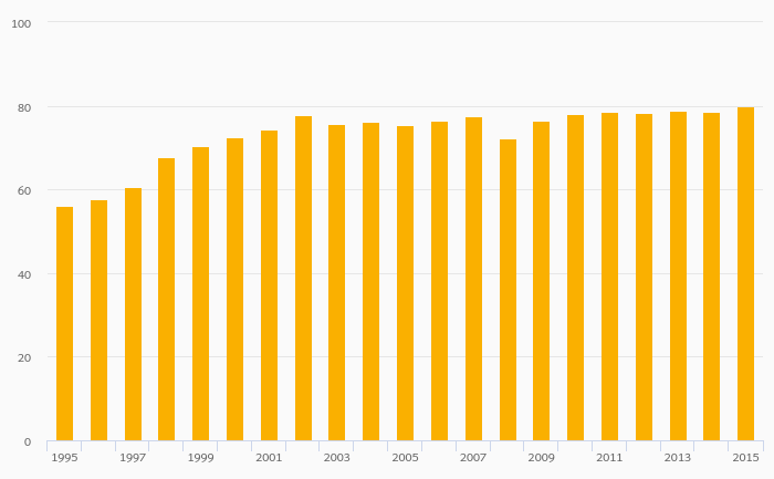 Road Transport In Passengers (As % of Total Inland Passenger Transport) rose 1.78% to 79.9% in Romania in 2015