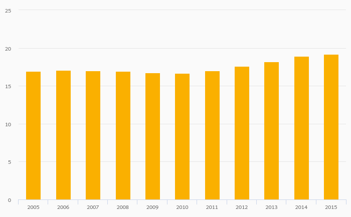 Motor Vehicles Per 1,000 People rose 1.49% to 19.2 vehicles in Honduras in 2015