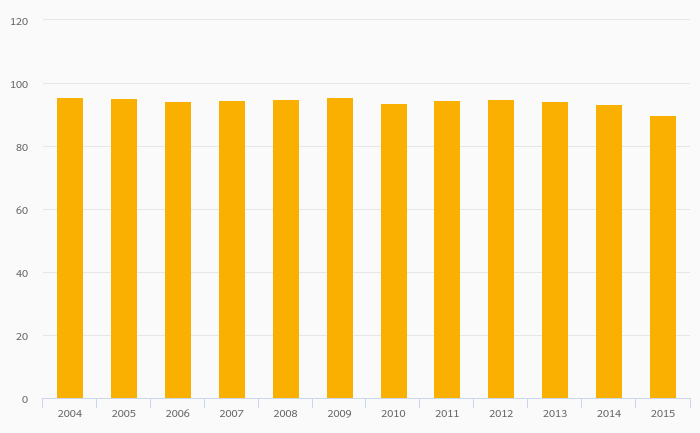 Quality of Postal Service (As % of Letters Delivered on-Time) fell 3.65% to 89.8% in Sweden in 2015