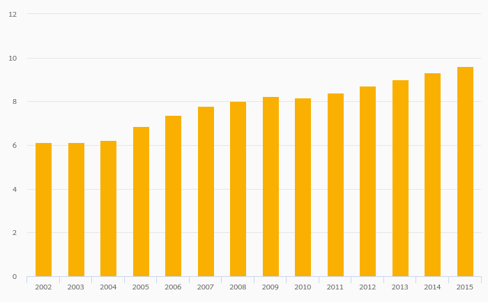 Number of Motor Vehicles rose 3.02% to 9.60 mil in South Africa in 2015