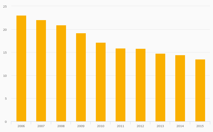 Number of Mopeds fell 6.34% to 13.5 '000 in Cyprus in 2015