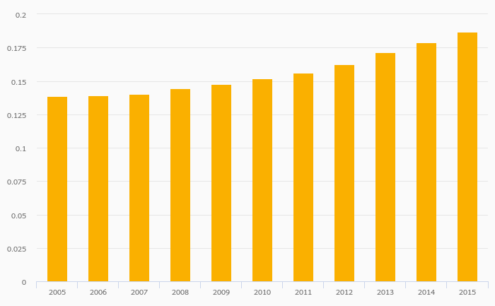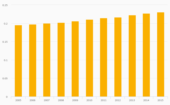 Passenger Cars Per Household rose 4.25% to 0.187 vehicles in Peru in 2015