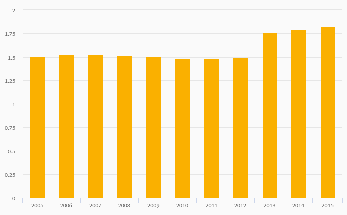 Passenger Cars Per Household rose 1.79% to 1.82 vehicles in New Zealand in 2015