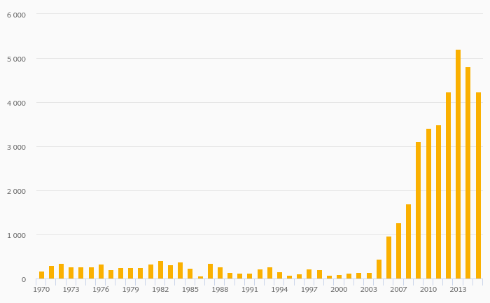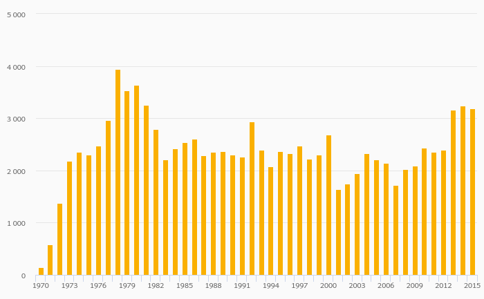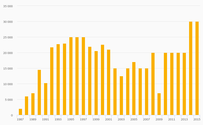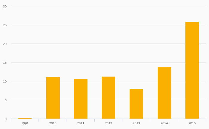 Graphite Production rose 0% to 30,000 tonnes in Canada in 2015