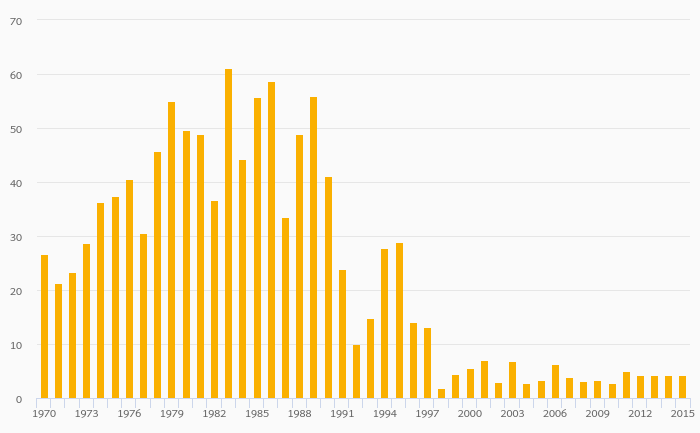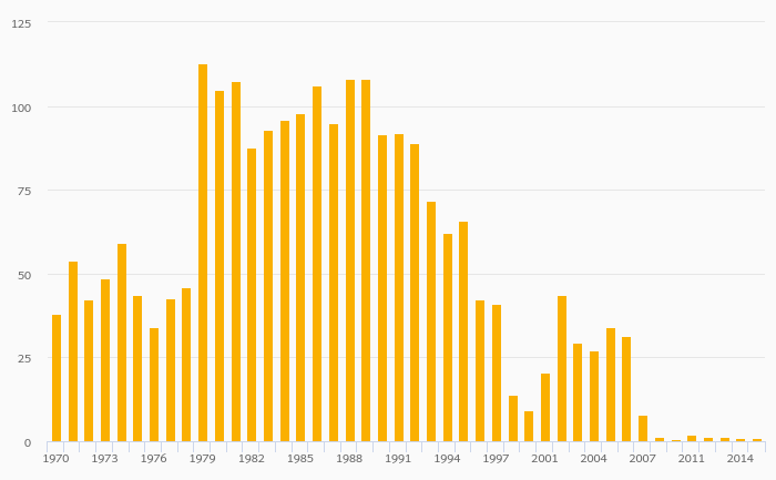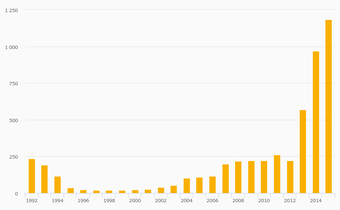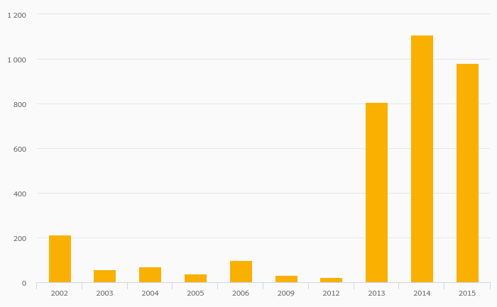 Mica Production fell 92.4% to 29.0 tonnes in South Africa in 2015