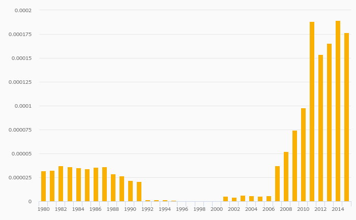 Coal Consumption (As % of Worldwide Consumption) rose 6.70% to 0.003% in Romania in 2015