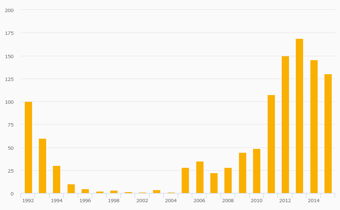 Bentonite Production rose 31.5% to 166 kt in South Korea in 2015