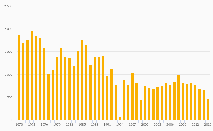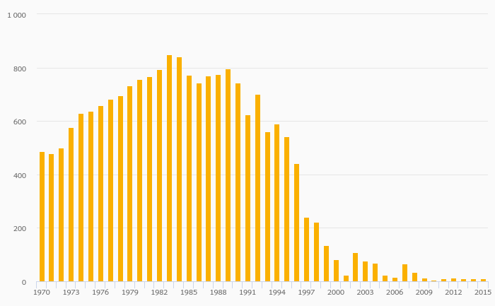 Hard Coal Production fell 43.8% to 26,838 kt in Ukraine in 2015