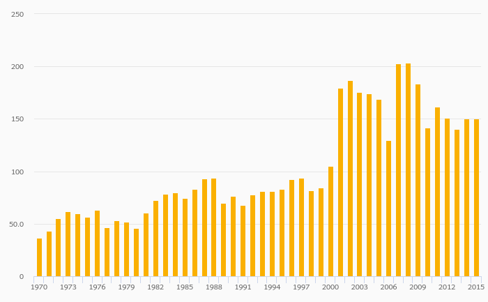 Copper (Smelter) Production rose 0% to 150 kt in Sweden in 2015