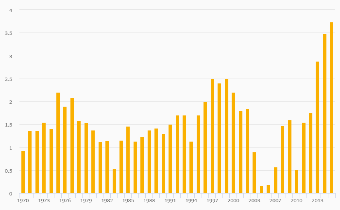 Antimony Prodution rose 7.26% to 3.74 in Australia in 2015
