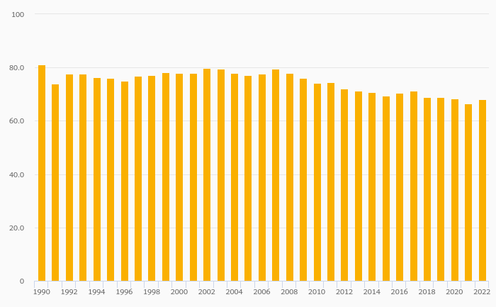 Fossil Fuel Consumption (As % of Total) rose 2.33% to 68.0% in Croatia in 2022