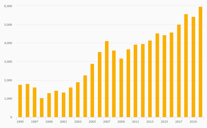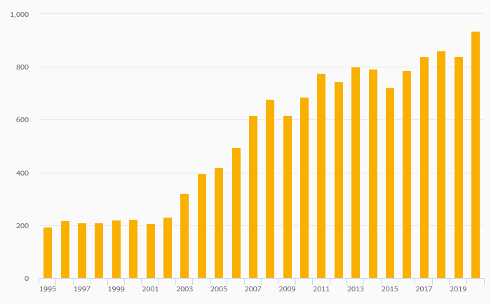 Households' Non-Financial Assets (USD) rose 11.2% to USD 936 bil in Sweden in 2020