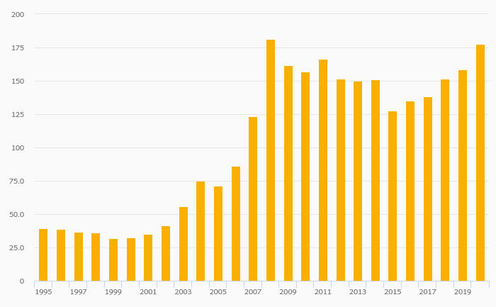 Households' Non-Financial Assets (USD) rose 12.1% to USD 178 bil in Slovakia in 2020