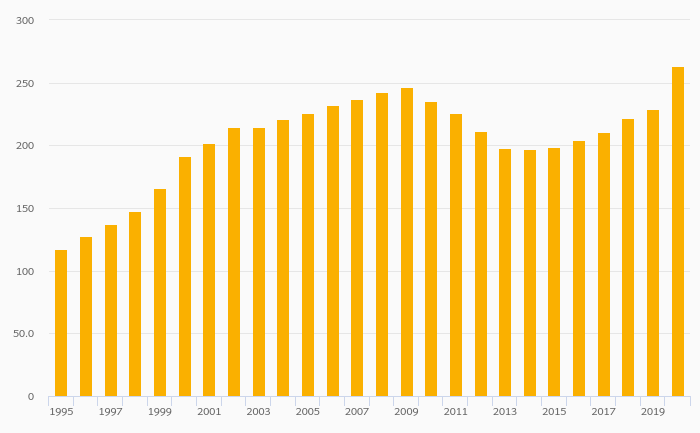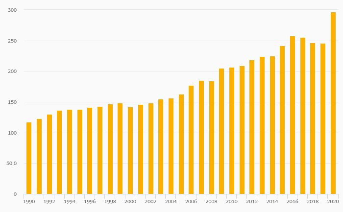 Households' Non-Financial Assets (As % of GDP) rose 21.0% to 297% in Canada in 2020
