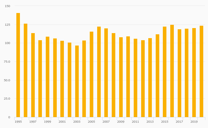 Households' Non-Financial Assets (As % of GDP) rose 2.71% to 124% in Lithuania in 2020