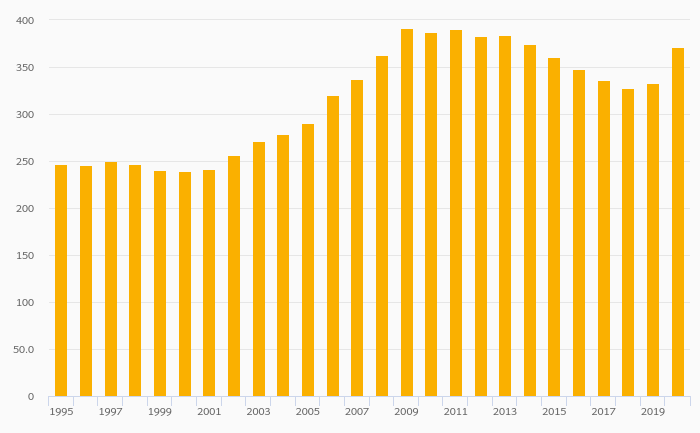 Households' Non-Financial Assets (As % of GDP) rose 11.6% to 371% in Italy in 2020