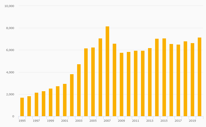 Households' Non-Financial Assets (USD) rose 7.41% to USD 7,142 bil in the United Kingdom in 2020