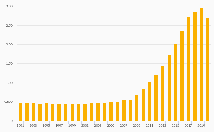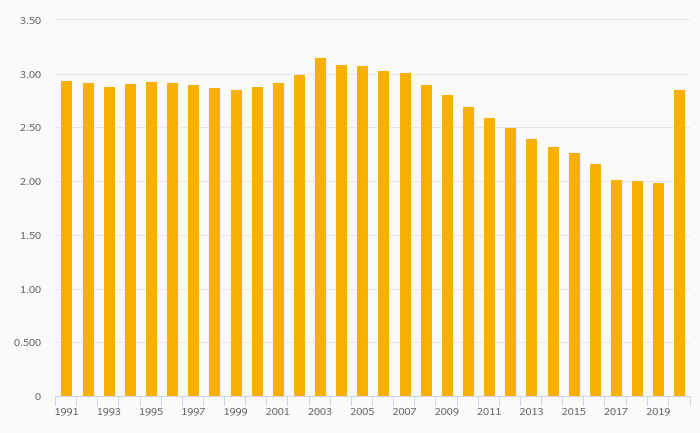 Employers, Male (As % of Employment) rose 43.7% to 2.86% in Iraq in 2020