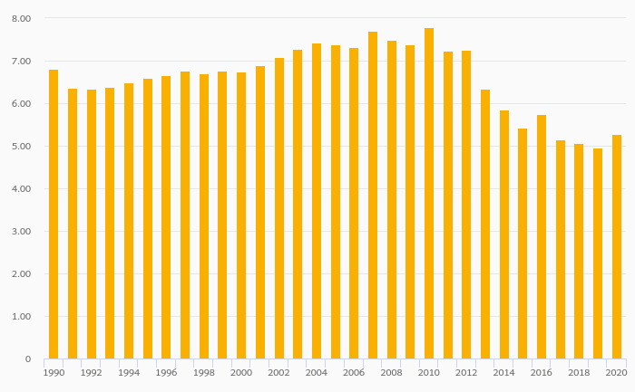 Employers, Male (As % of Employment) rose 7.09% to 4.30% in Czechia in 2020