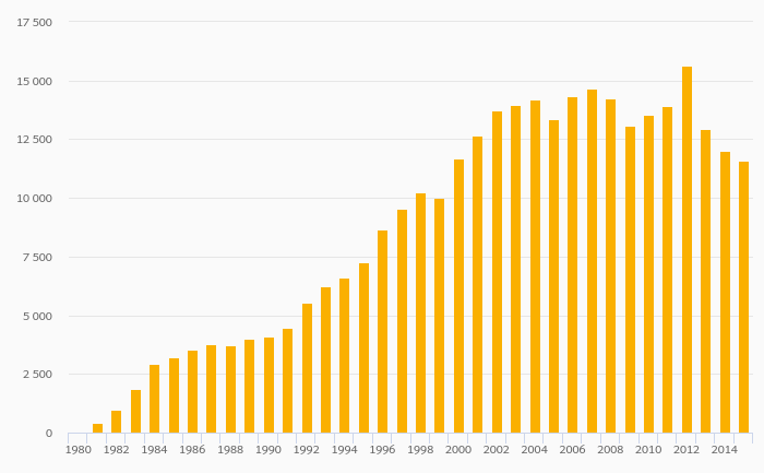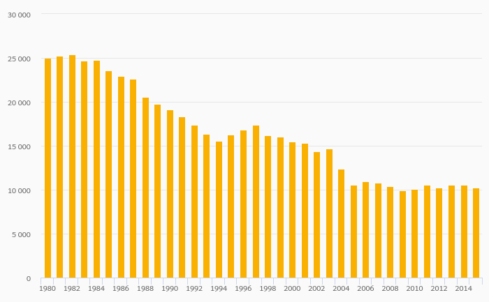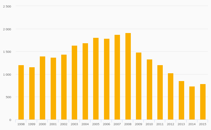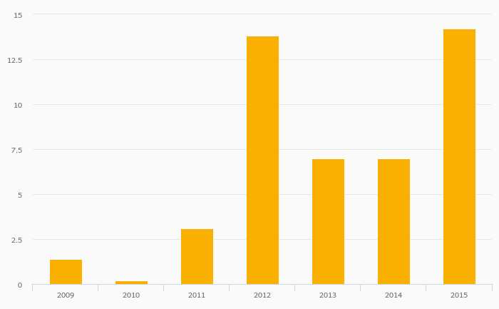 Cobalt (Metal) Production fell 23.4% to 9,615 tonnes in Finland in 2015