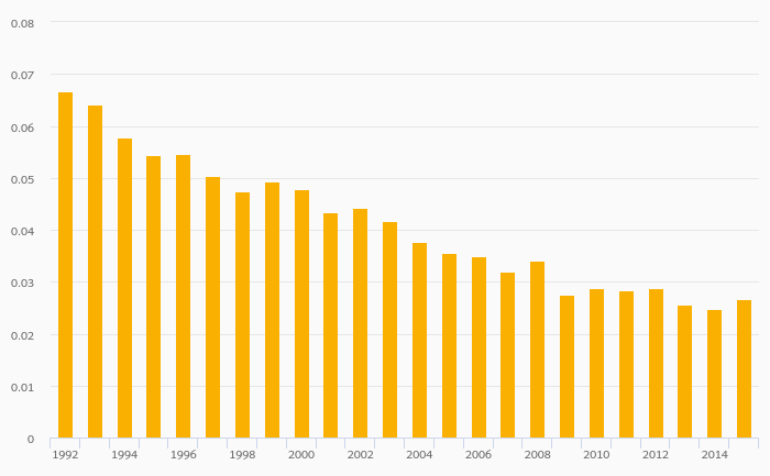 Coal Consumption (As % of Worldwide Consumption) rose 7.79% to 0.027% in Russia in 2015
