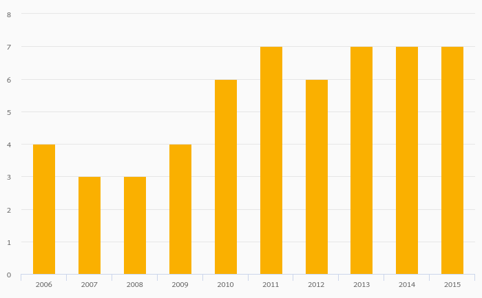 Indium (Refined) Production rose 0% to 7.00 tonnes in Russia in 2015