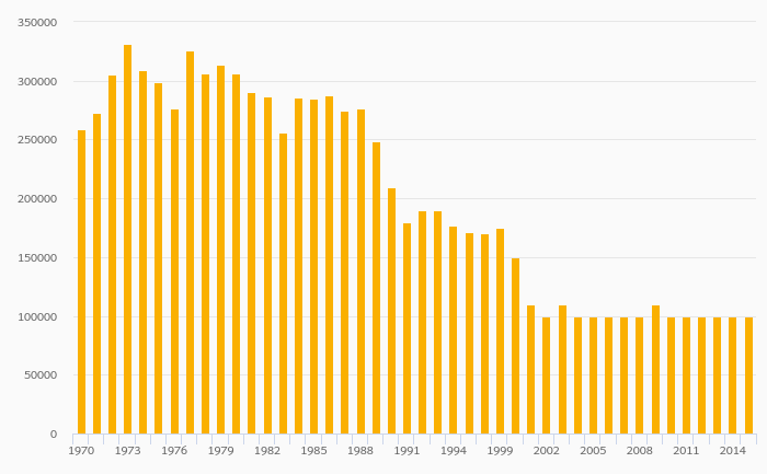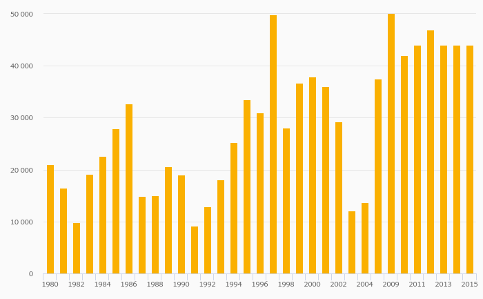 Vermiculite Production rose 0% to 100,000 tonnes in the USA in 2015