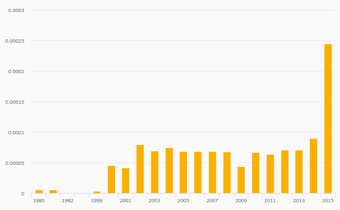Coal Consumption (As % of Worldwide Consumption) rose 171% to < 0.001% in Guatemala in 2015