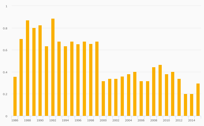 Motor Gasoline Consumption (As % of Worldwide Consumption) rose 72.7% to 0.382% in New Zealand in 2015
