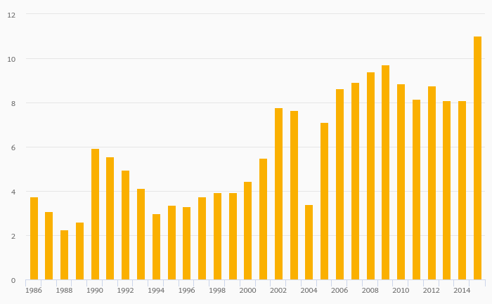 Jet Fuel Consumption rose 36.0% to 11.0 '000 bpd in Oman in 2015