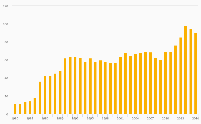 Total Oil Supply fell 4.98% to 89.8 '000 bpd in Pakistan in 2016