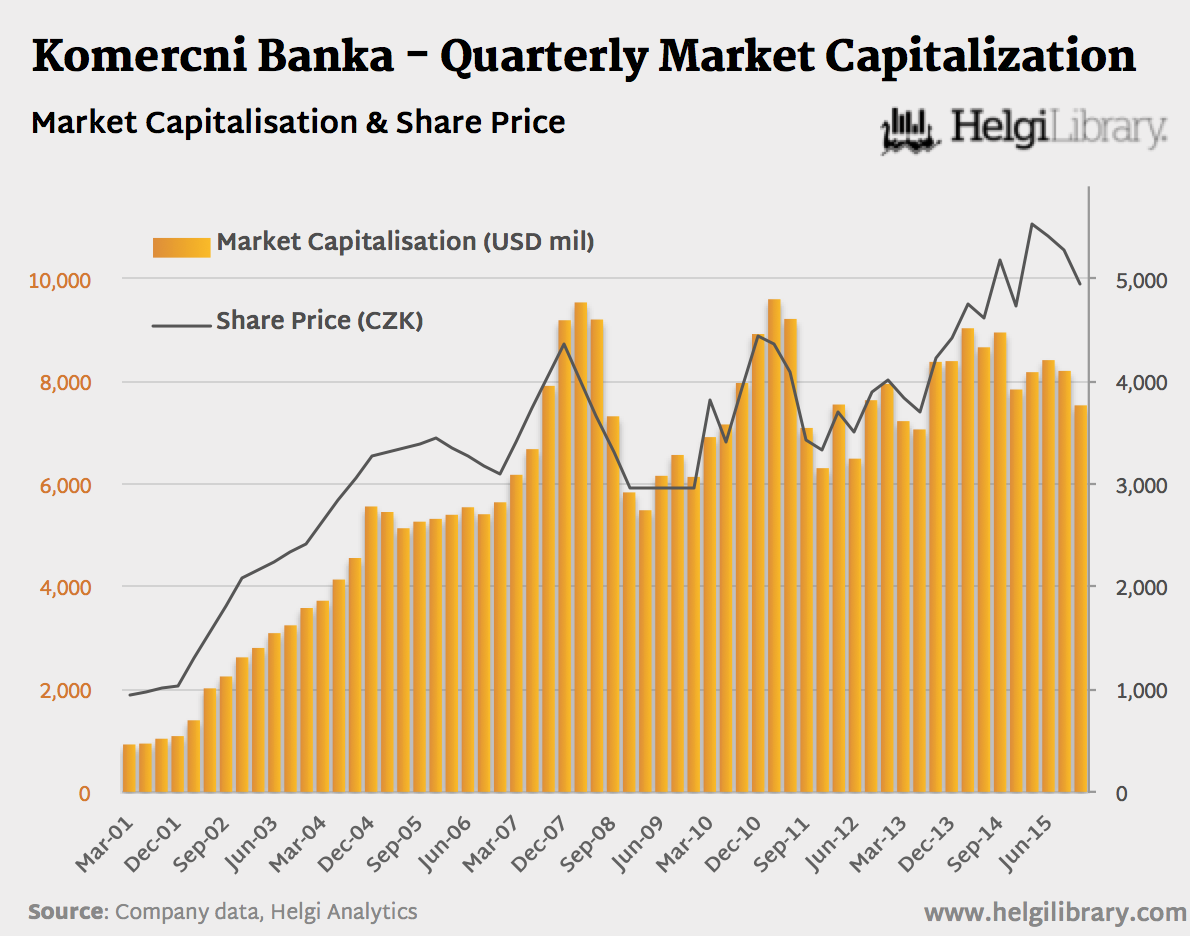 Komercni banka - Quarterly Market Capitalization (Mar01-Dec15)