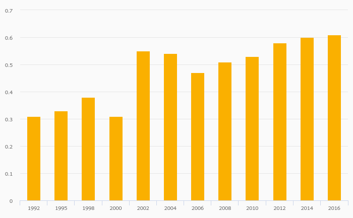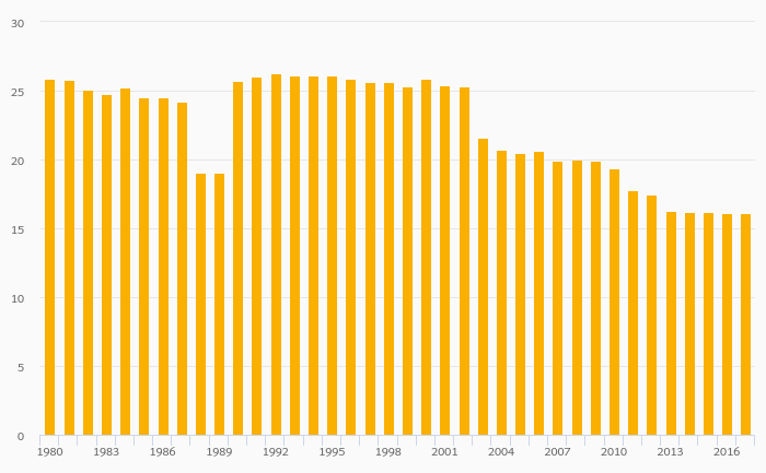 Crude Oil Reserves (As % of Worldwide Reserves) fell 0.046% to 16.1% in Saudi Arabia in 2017