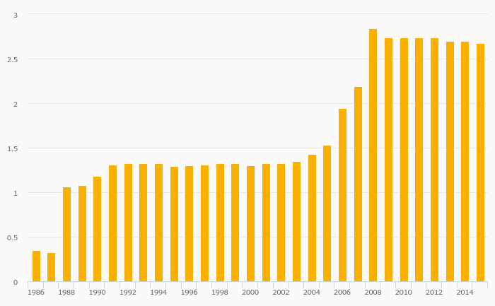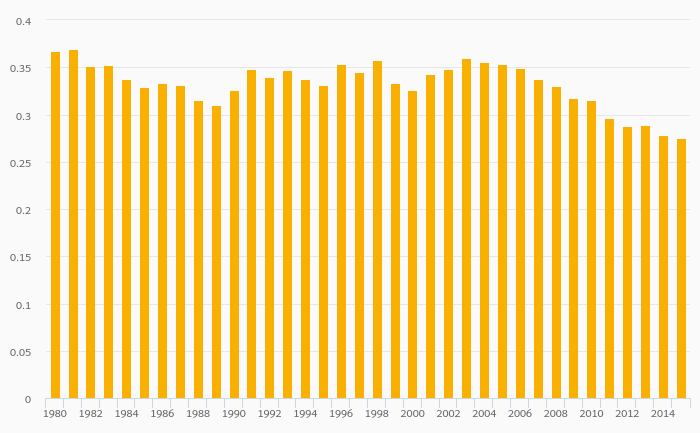 Petroleum Consumption (As % of Worldwide Consumption) fell 1.27% to 0.275% in Austria in 2015