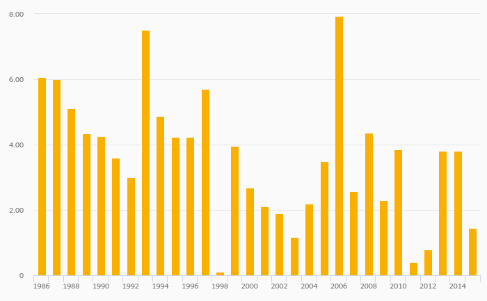 Kerosene Consumption fell 62.1% to 1.44 '000 bpd in Malaysia in 2015
