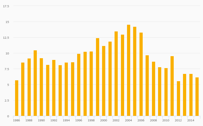 Total Petroleum Consumption fell 14.3% to 135 '000 bpd in Jordan in 2015