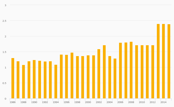 Jet Fuel Consumption fell 0.422% to 2.39 '000 bpd in Papua New Guinea in 2015