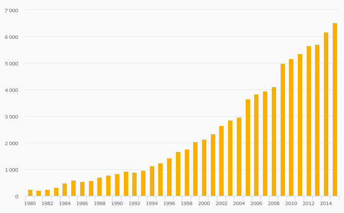 Dry Natural Gas Production rose 5.91% to 6,526 bil cb ft in Iran in 2015