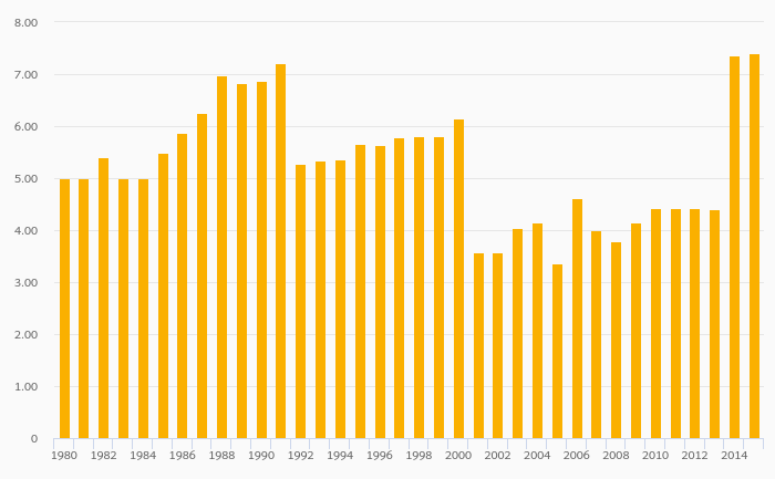 Total Petroleum Consumption rose 0.625% to 7.40 '000 bpd in Sierra Leone in 2015
