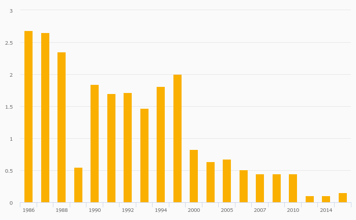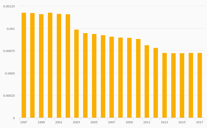 Crude Oil Supply (As % of Worldwide Supply) fell 0.436% to < 0.001% in Slovenia in 2016