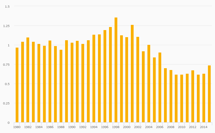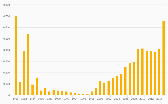 Dry Natural Gas Production (As % of Worldwide Production) rose 17.1% to 0.740% in Venezuela in 2015