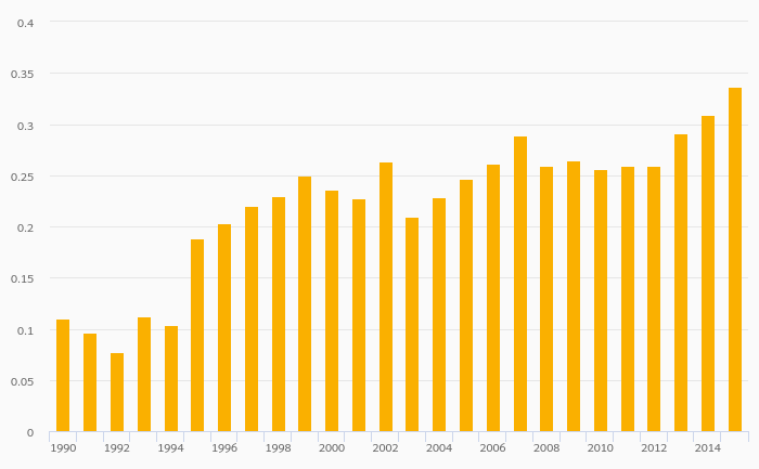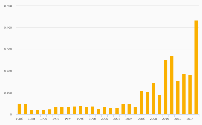Kerosene Consumption (As % of Worldwide Consumption) rose 59.6% to 0.654% in France in 2015