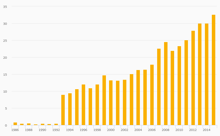 Distillate Fuel Oil Consumption rose 8.57% to 32.6 '000 bpd in Bolivia in 2015