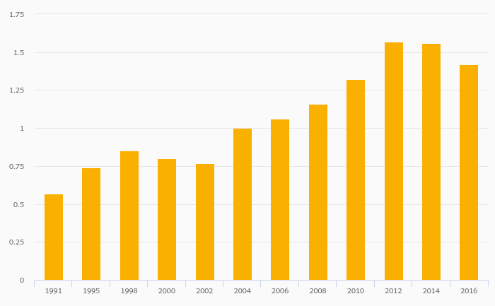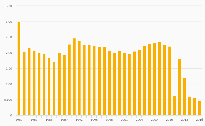 Crude Oil Supply (As % of Worldwide Supply) fell 16.6% to 0.459% in Libya in 2016