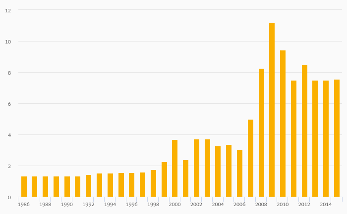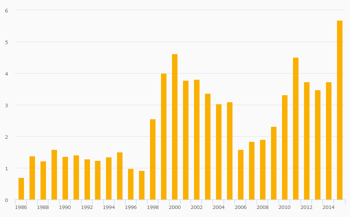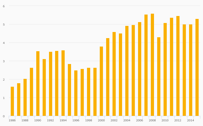 Jet Fuel Consumption rose 6.02% to 5.30 '000 bpd in Mauritius in 2015