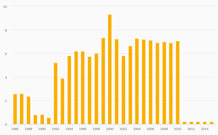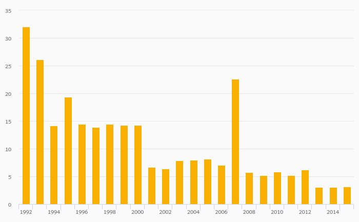 Jet Fuel Consumption rose 1.62% to 3.15 '000 bpd in Ukraine in 2015