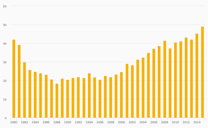 Total Petroleum Consumption rose 8.20% to 49.0 '000 bpd in Trinidad and Tobago in 2015
