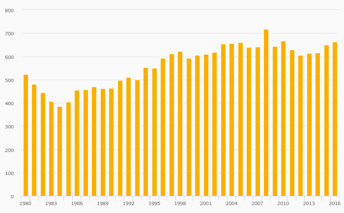 Total Petroleum Consumption rose 1.98% to 662 '000 bpd in Belgium in 2016