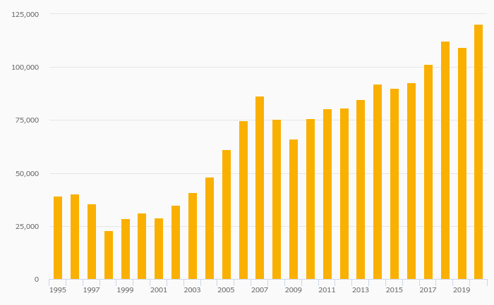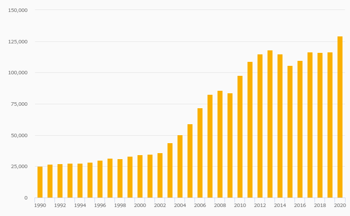 Households' Non-Financial Assets Per Capita (USD) rose 10.1% to USD 120,378 in South Korea in 2020